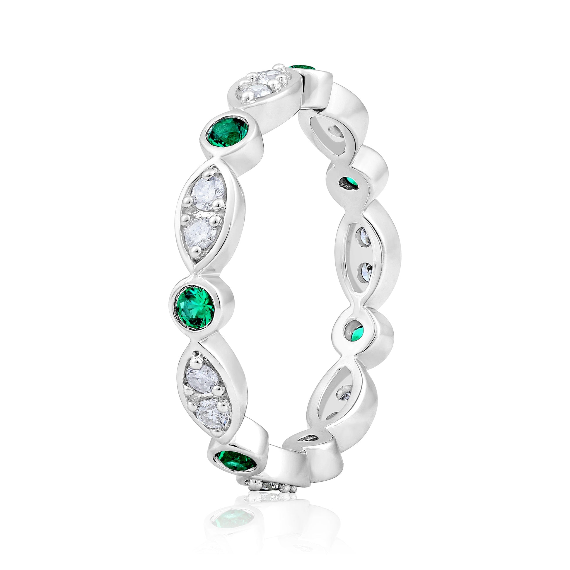 Crafted in 3.01 grams of White Gold, the ring features 14 stones of Natural Diamonds with a total weight of 0.35 carats and 7 stones of Emerald Gemstone with a total weight of 0.38 carats.
