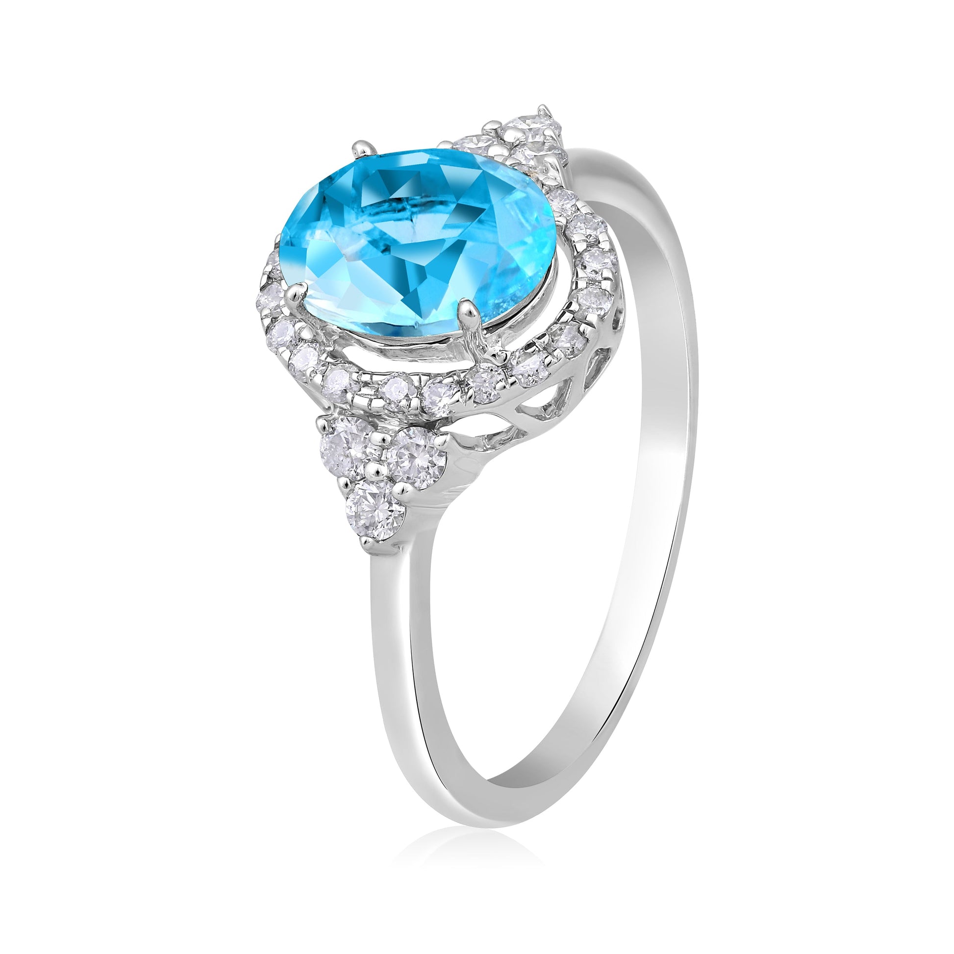 Crafted in 2.6 grams of White Gold, the ring features 26 stones of Natural Diamonds with a total weight of 0.301 carats and 1 stone of Aquamarine Gemstone with a total weight of 0.934 carats.