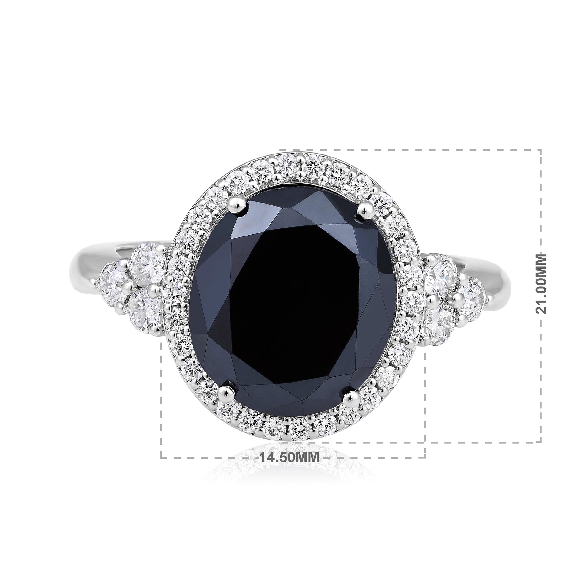 Crafted in 4.9 grams of White Gold, the ring features 36 stones of Natural Diamonds with a total weight of 0.5 carats and 1 stone of Black Diamonds Gemstone with a total weight of 4.93 carats.