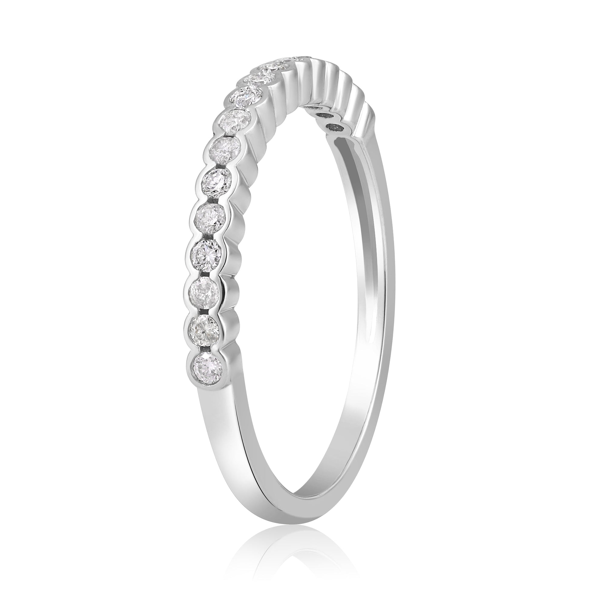 Crafted in 1.55 grams of White Gold, the ring features 17 stones of Natural Diamonds with a total weight of 0.2 carats.