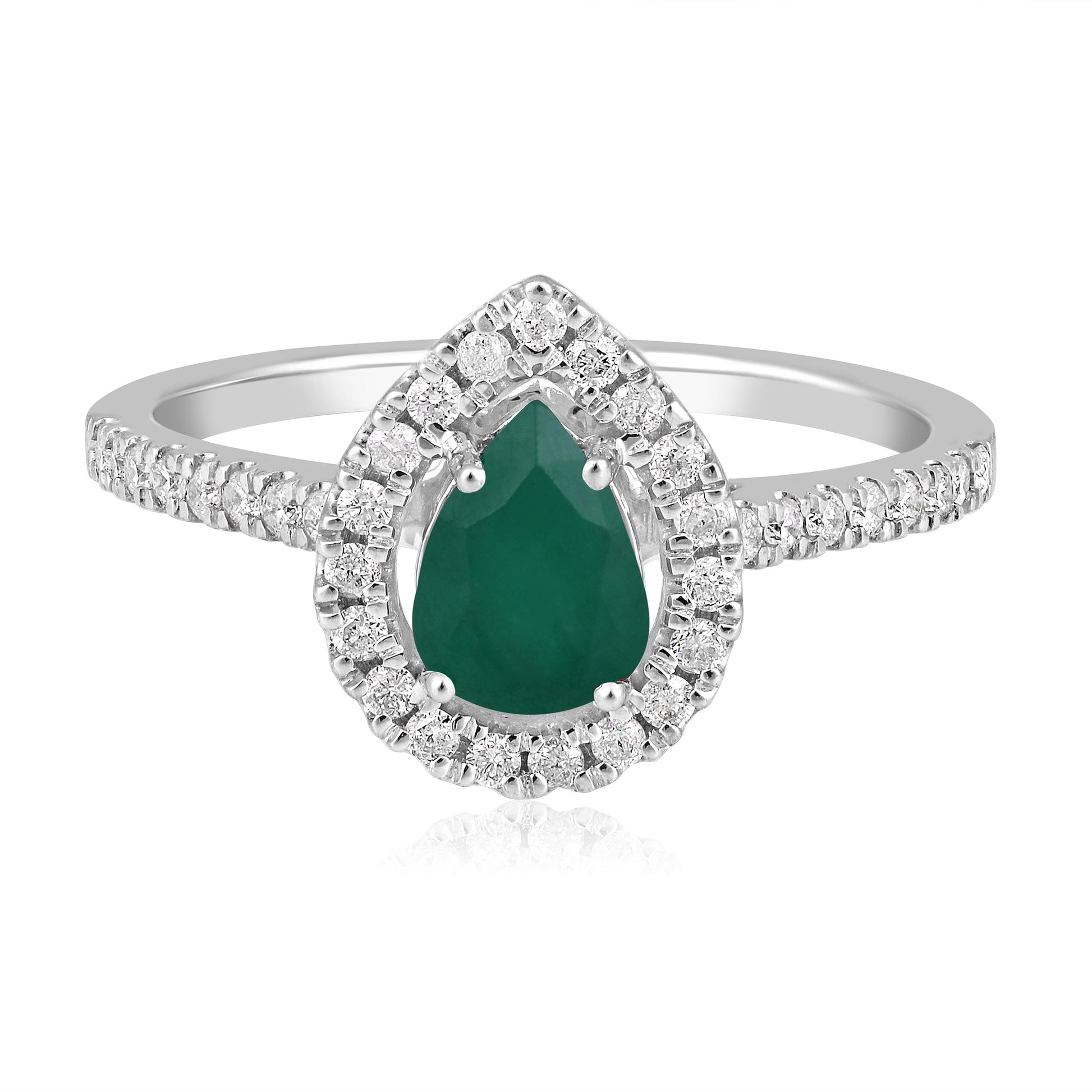 Crafted in 2.5 grams of White Gold, the ring features 35 stones of Natural Diamonds with a total weight of 0.28 carats and 1 stone of Natural Emerald with a total weight of 0.82 carats.