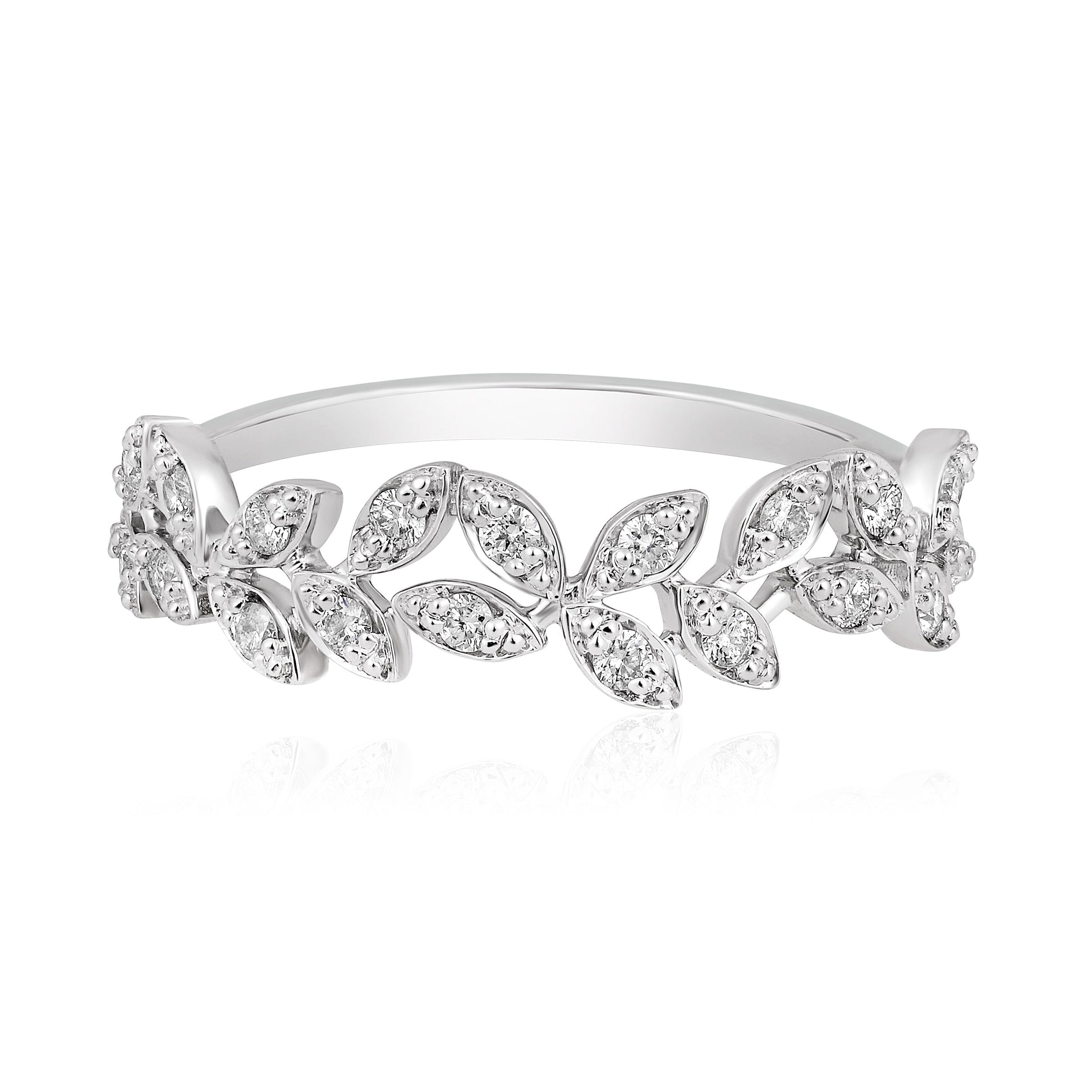 Crafted in 1.9 grams of White Gold, the ring features 19 stones of Natural Diamonds with a total weight of 0.22 carats.