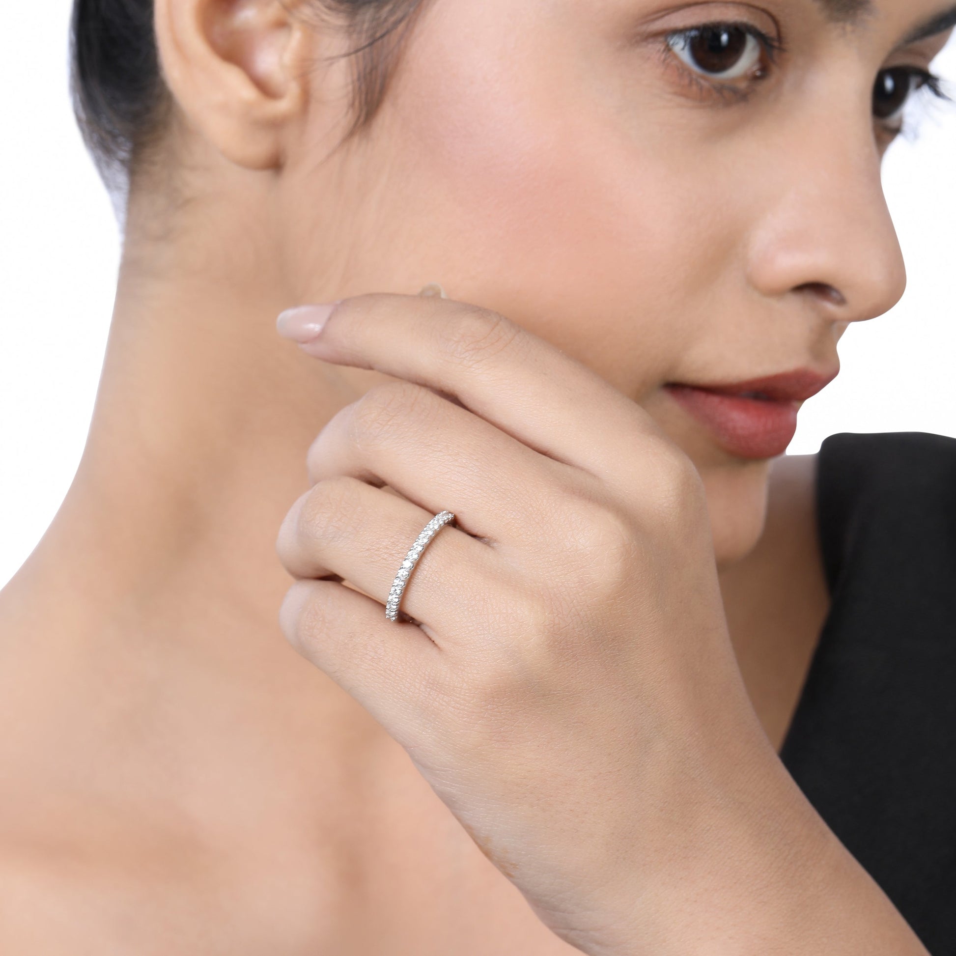 Crafted in 2.2 grams of White Gold, the ring features 17 stones of Natural Diamonds with a total weight of 0.32 carats.