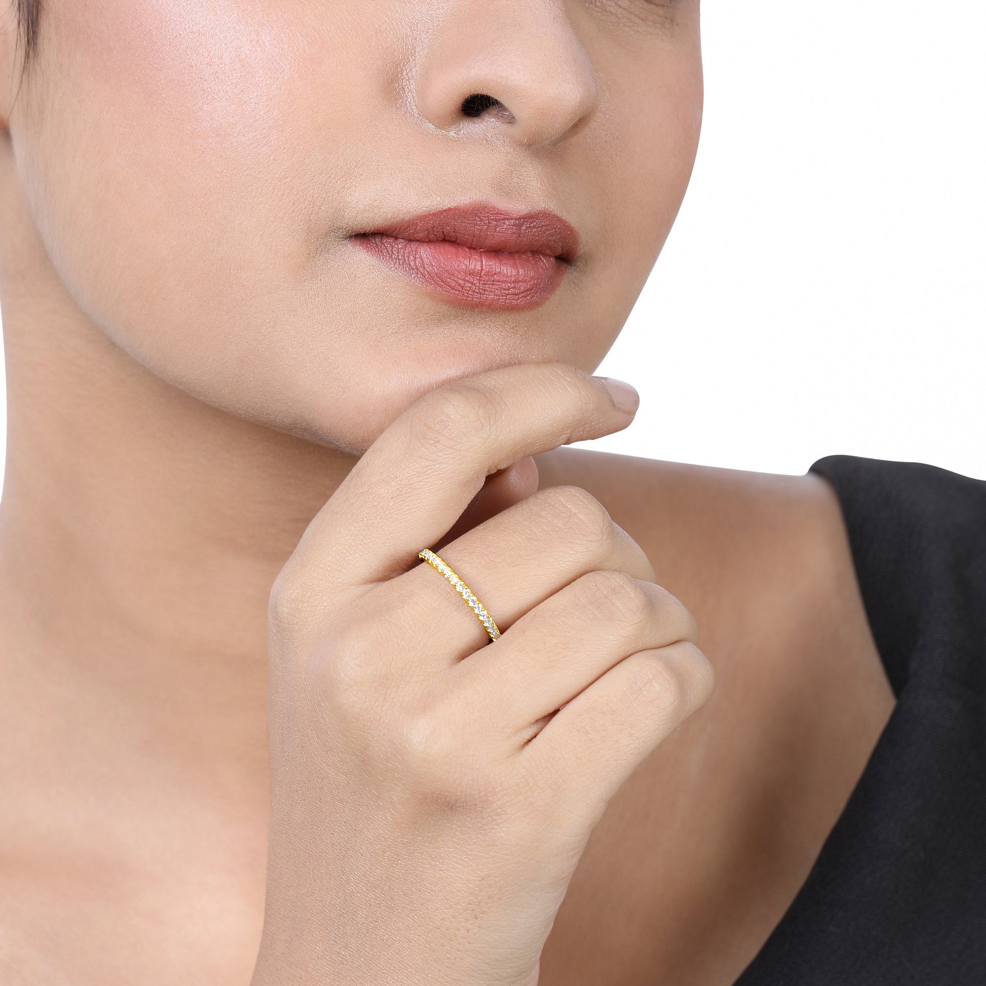 Crafted in 1.31 grams of Yellow Gold, the ring features 25 stones of Natural Diamonds with a total weight of 0.19 carats.