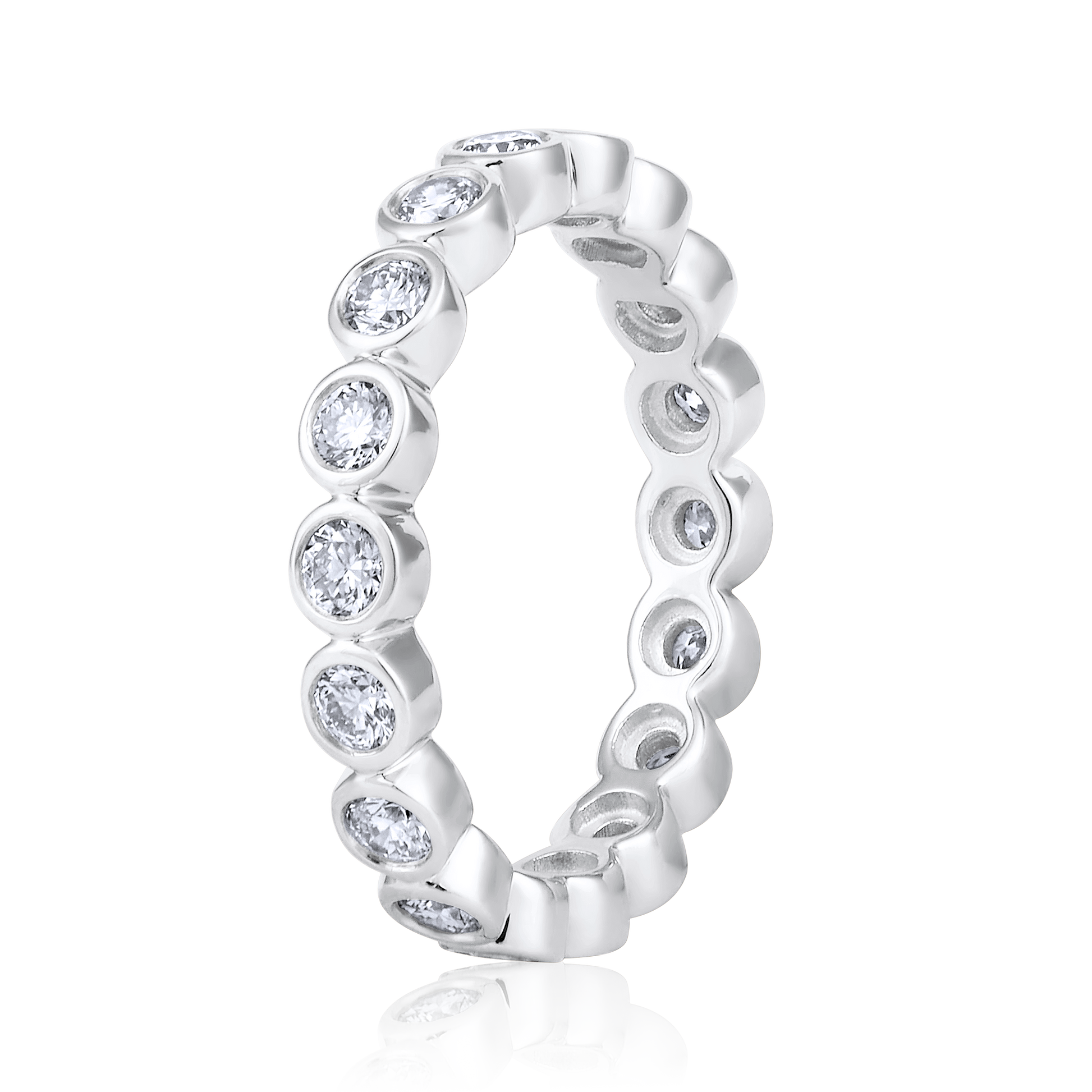 Crafted in 3.55 grams of White Gold, the ring features 18 stones of Natural Diamonds with a total weight of 1.03 carats.