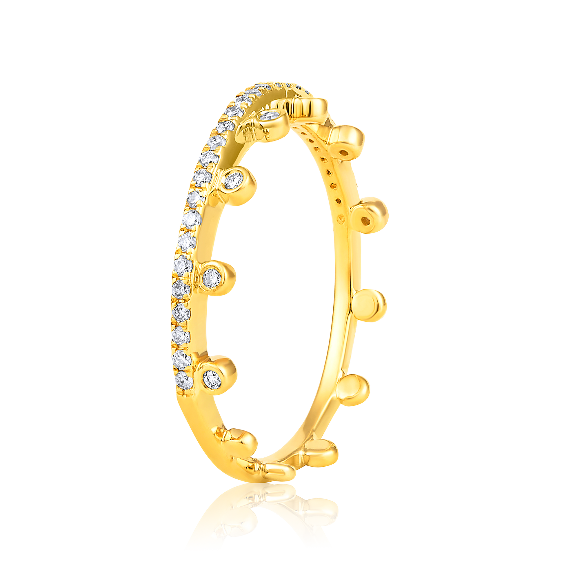 Crafted in 1.77 grams of Yellow Gold, the ring features 36 stones of Natural Diamonds with a total weight of 0.18 carats.