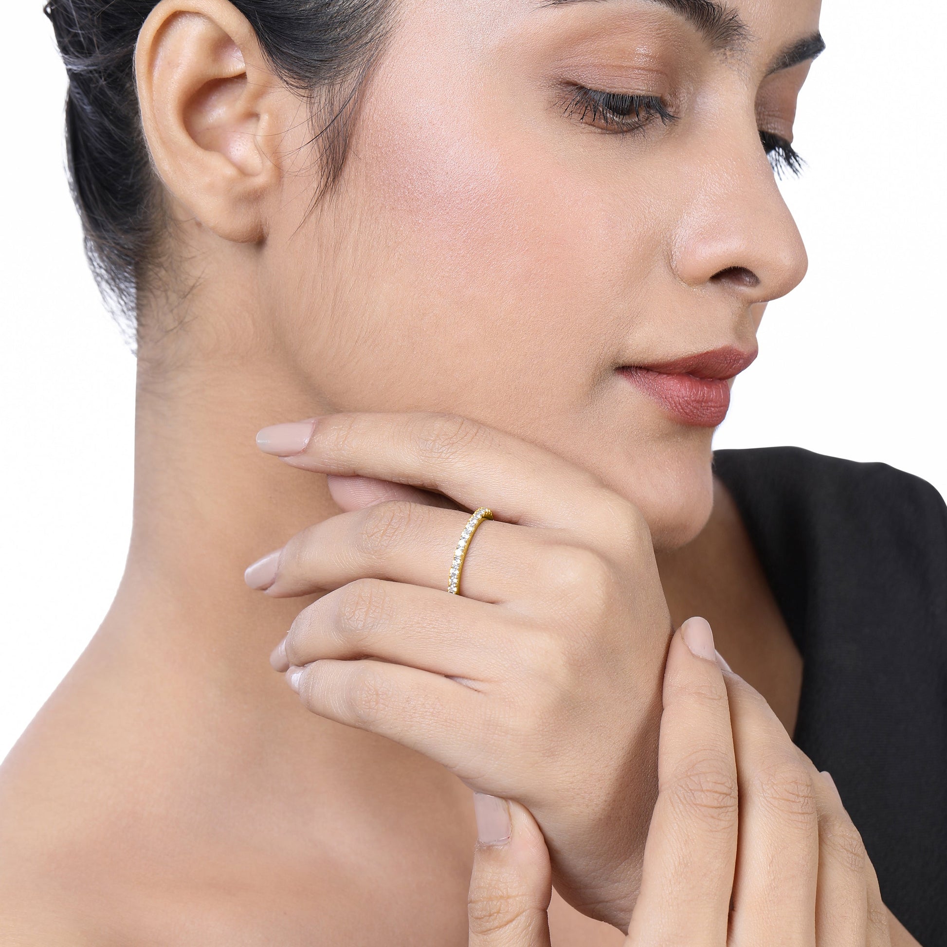 Crafted in 1.93 grams of Yellow Gold, the ring features 30 stones of Natural Diamonds with a total weight of 0.77 carats.