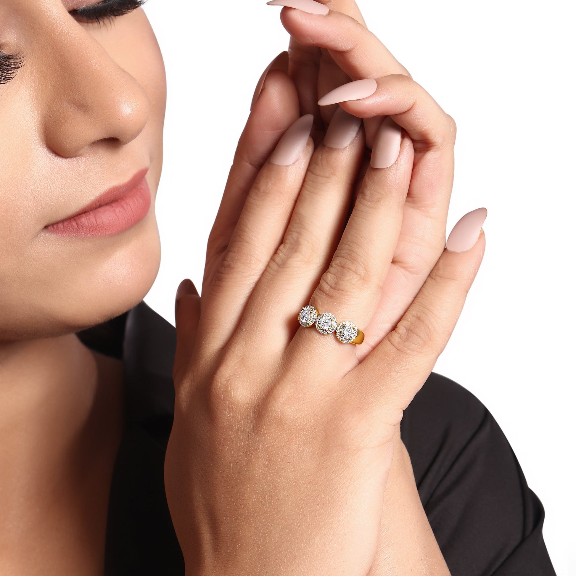 Crafted in 3.33 grams of Yellow Gold, the ring features 54 stones of Natural Diamonds with a total weight of 1.08 carats.