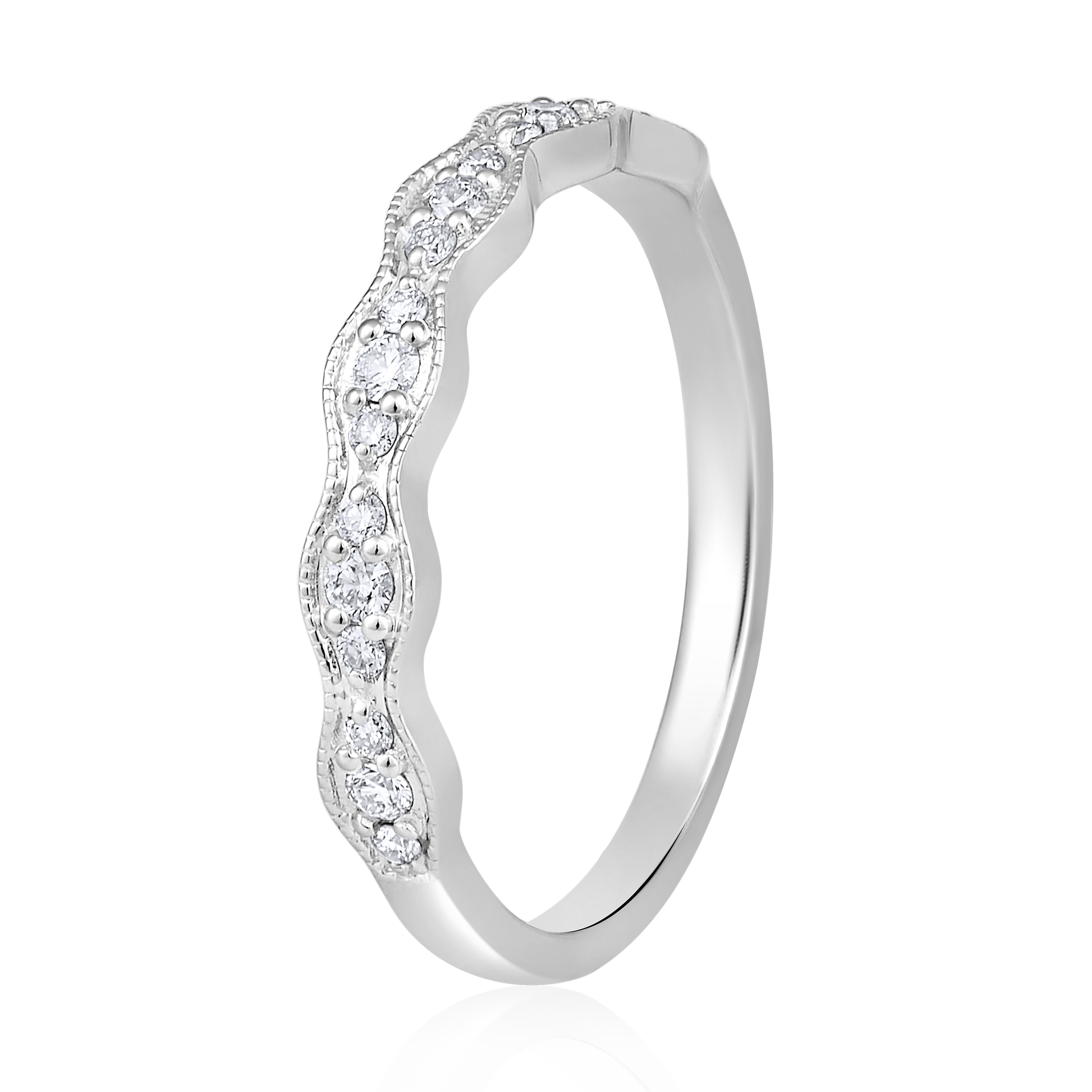 Crafted in 2.16 grams of White Gold, the ring features 18 stones of Natural Diamonds with a total weight of 0.19 carats.