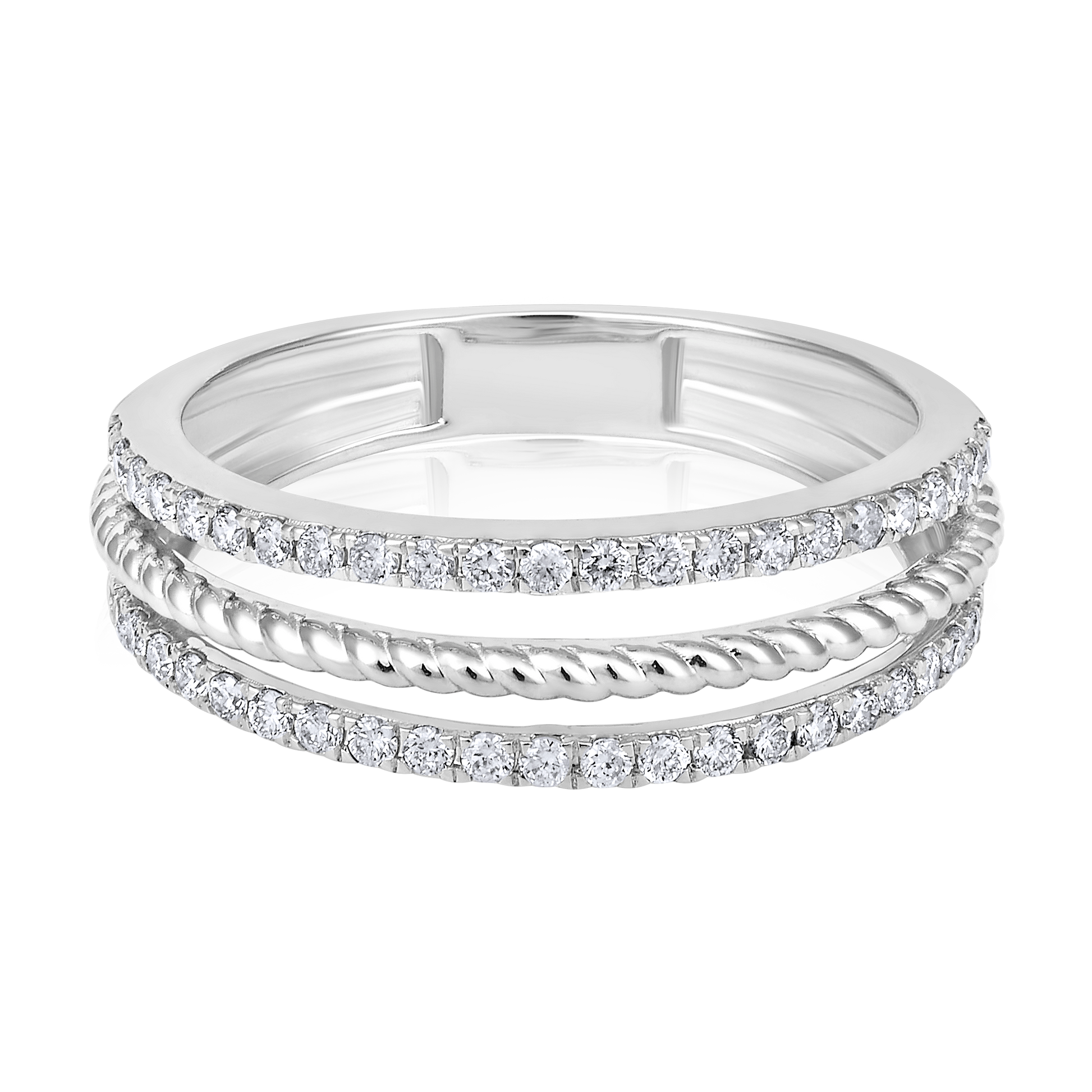 Crafted in 2.82 grams of White Gold, the ring features 46 stones of Natural Diamonds with a total weight of 0.35 carats.