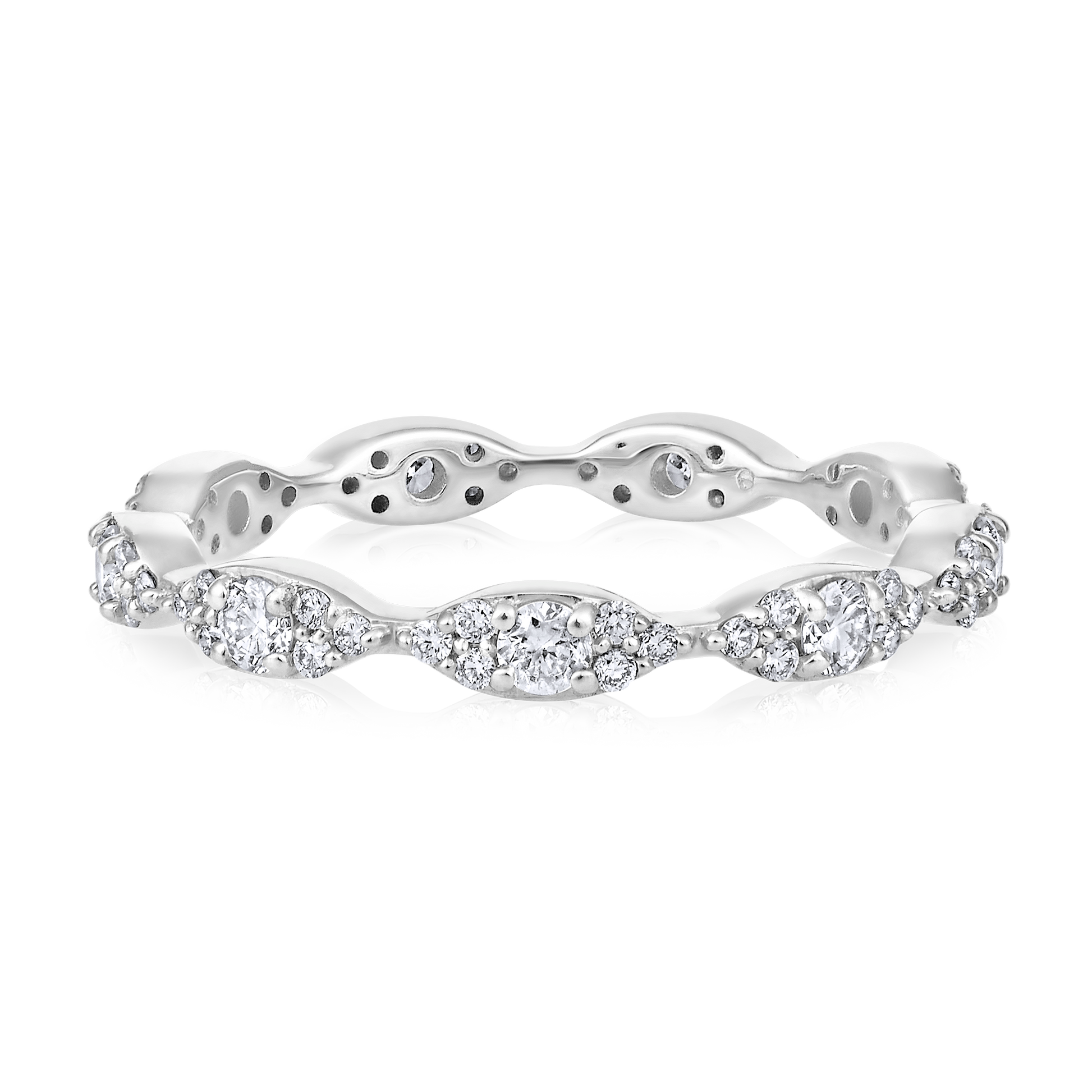 Crafted in 2.21 grams of White Gold, the ring features 63 stones of Natural Diamonds with a total weight of 0.64 carats.