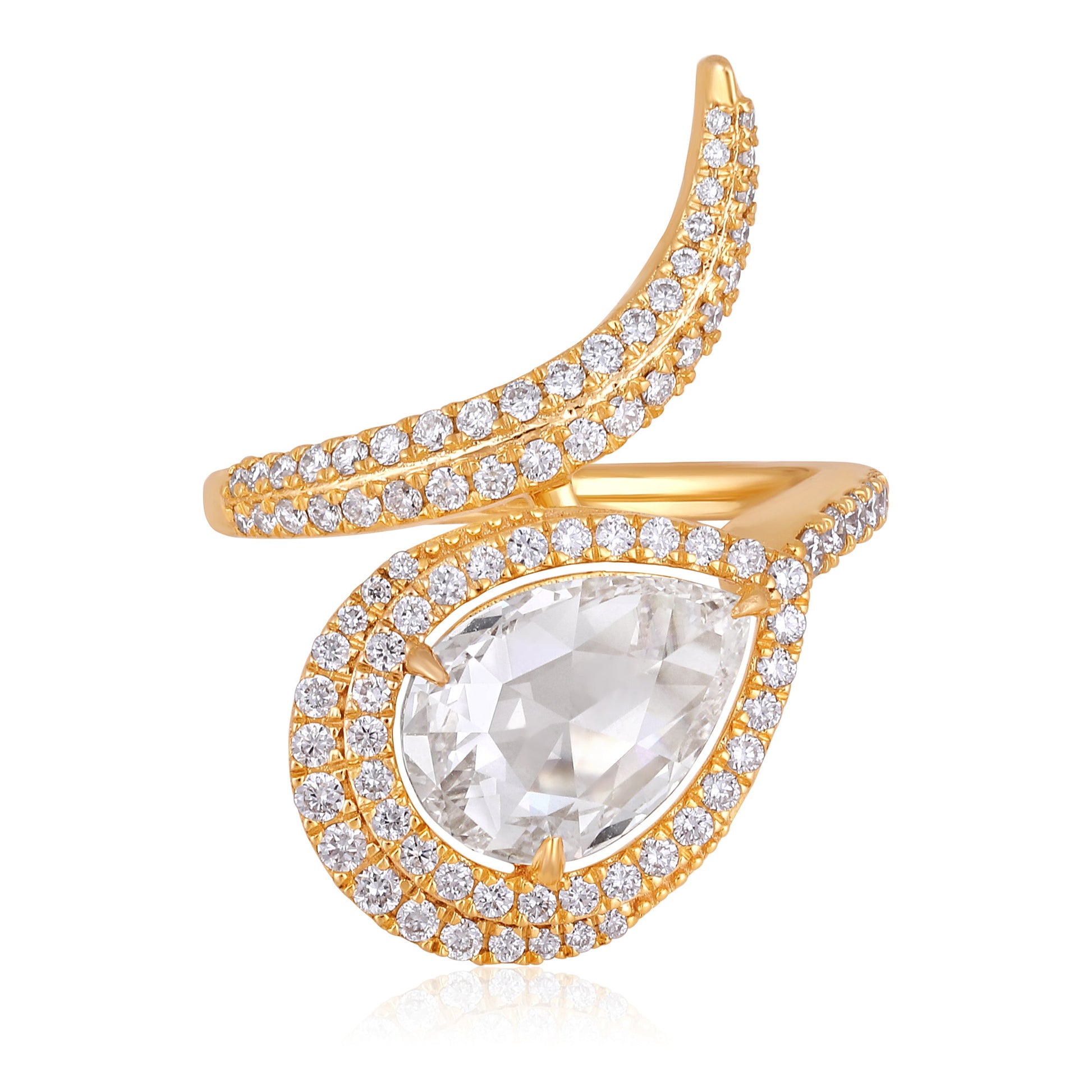 Crafted in 5.54 grams of Yellow Gold, the ring features 88 Natural diamonds with a total weight of 3.18 carats.