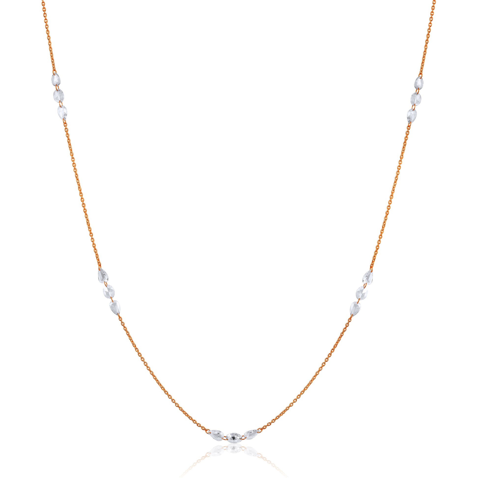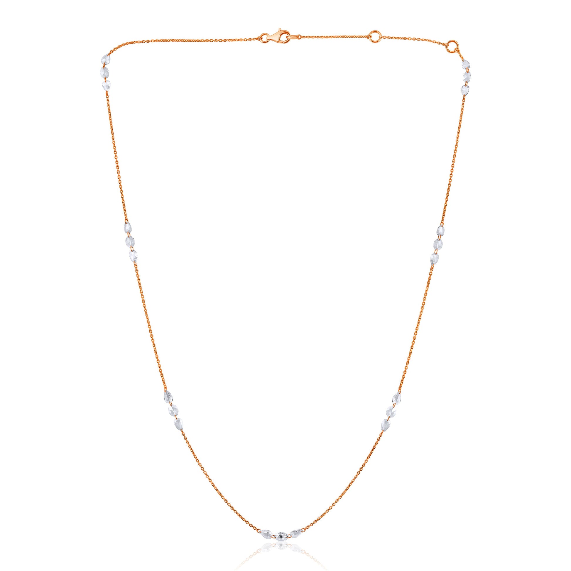 Crafted in 1.844 grams of Rose Gold, the necklace features 21 stones of Natural Diamonds with a total weight of 1.82 carats.
