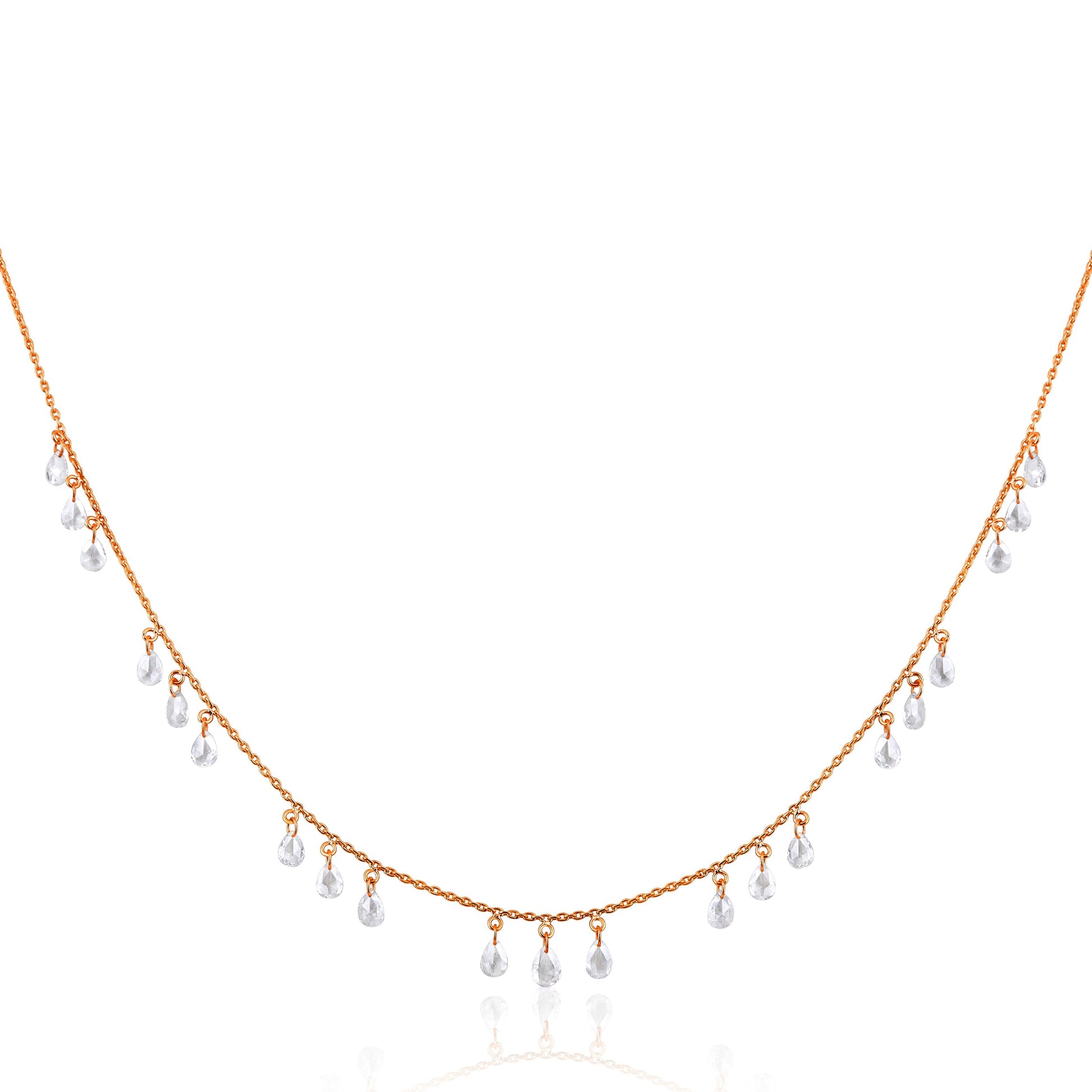 Crafted in 2.15 grams of Rose Gold, the necklace features 21 stones of Natural Diamonds with a total weight of 1.45 carats.