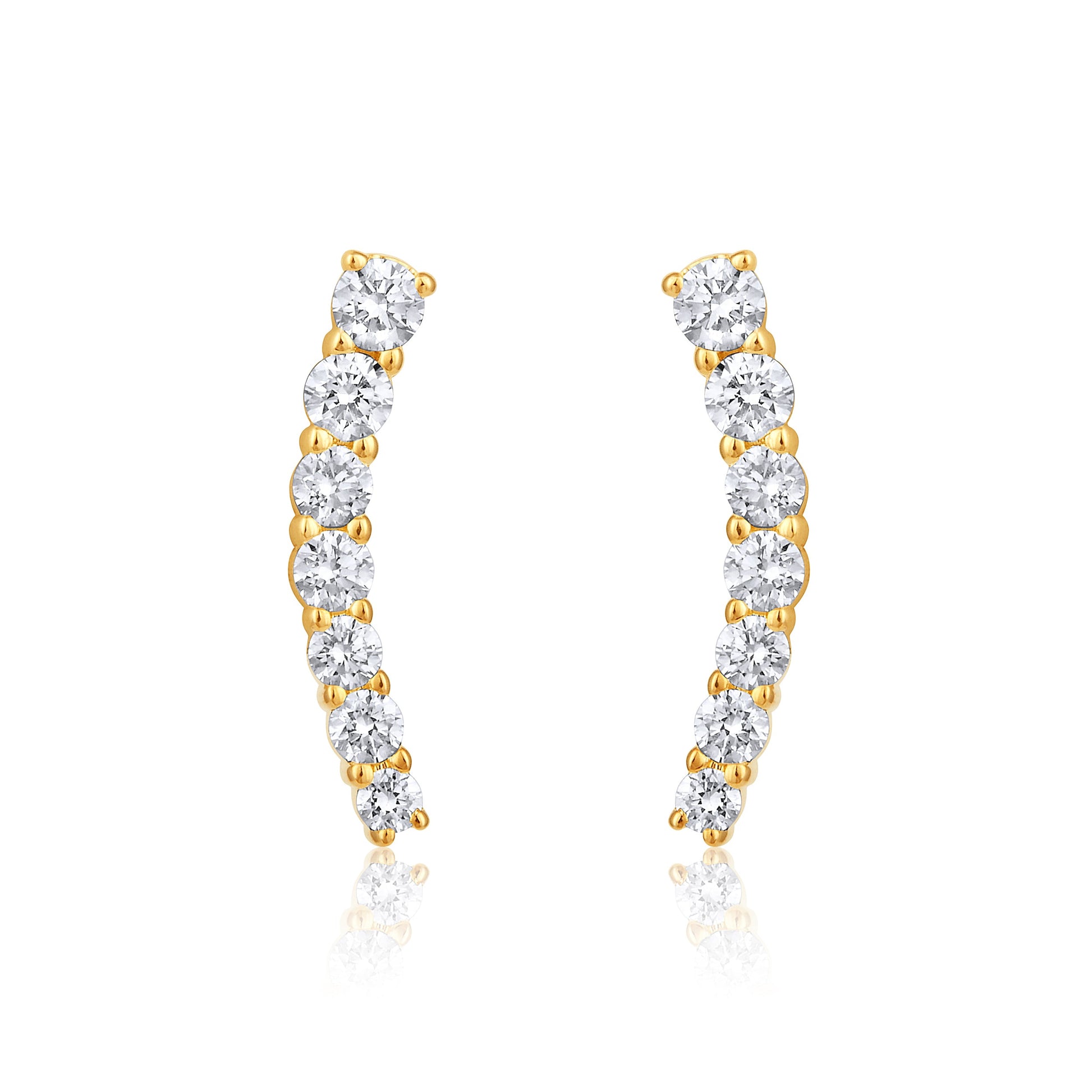 Crafted in 1.35 grams of Yellow Gold, the earrings features 14 stones of Natural Diamonds with a total weight of 0.44 carats.