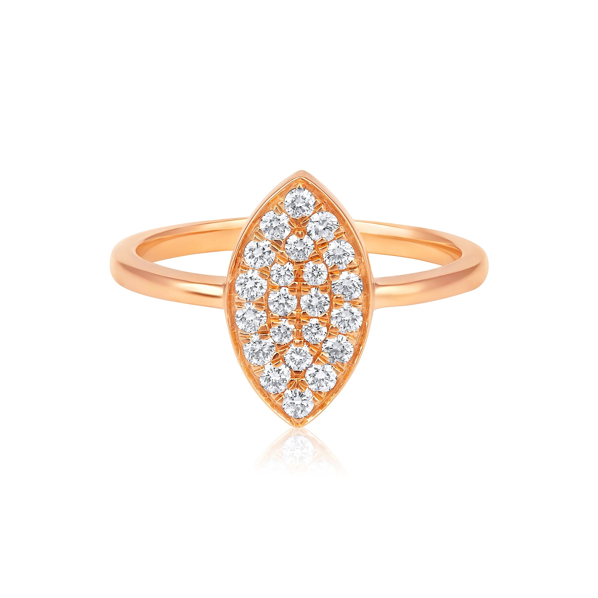 Crafted in 2.58 grams of Rose Gold, the ring features 22 stones of Natural Diamonds with a total weight of 0.35 carats.