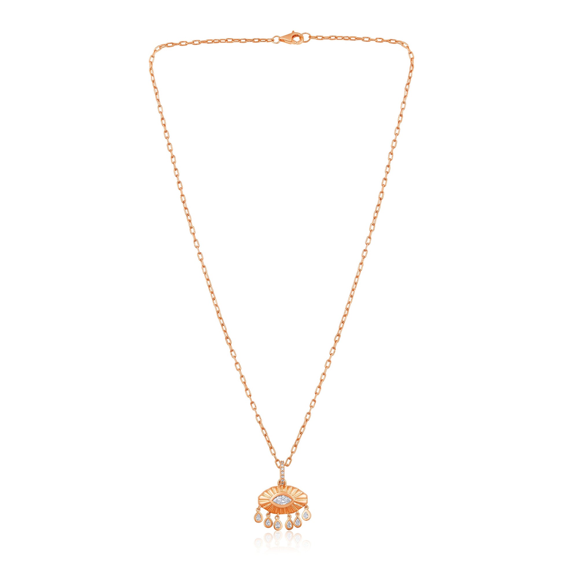 Crafted in 6.34 grams of Rose Gold, the necklace features 14 stones of Natural Diamonds with a total weight of 0.67 carats.